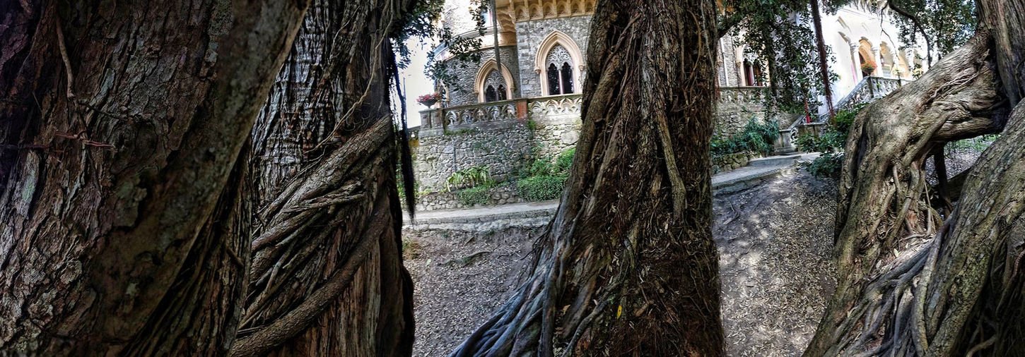 Lord Byron visited the park and palace in 1809 and wrote: "One wanders through rampant bushes and finds a palace with empty halls and shutters left open." He describes it as "one of the most beautiful places I have seen to this day - a second Garden of Eden." Monserrate gained new life in 1856 when the English textile millionaire Francis Cook bought it from the Mello e Castro family. In Victorian times, these gardens were among the most beautiful and exotic in the world. It was also at this time that a new ruined chapel was built in the park in honour of the Virgin of Monserrate, reminiscent of a knights' fortress. Cook fitted it with Etruscan sarcophagi to give it a more sublime appearance. At the centre of this garden, in a protected warm valley, lies the tropical garden with palm trees, pandanus (screw palm) and palm ferns. The Pohutukawa (Metrosideros excelsus), the New Zealand Christmas tree at the head of the palace, forms aerial roots to support its treetops. When the aerial roots have reached the ground, they develop into further branches, which is why the trunks of these trees are so strongly branched. The Valley of the Treeferns is another legacy of Francis Cook. A deep moist depression, crossed by a network of paths between steep terraced slopes, has been replanted with hundreds of Australian fern trees. The romantic Monserrate, created by Sir Francis Cook, was designed as a large "greenhouse outdoors". The scale of the plant collections was easily matched by the palm trees, fern trees and palm ferns in the crystal palaces of the botanical gardens of London, Frankfurt and Paris. Until twenty years ago, the palace and gardens were in a state of decay before restoration work began. Monserrate is part of the Sintra cultural landscape, which is now listed as a UNESCO World Heritage Site.